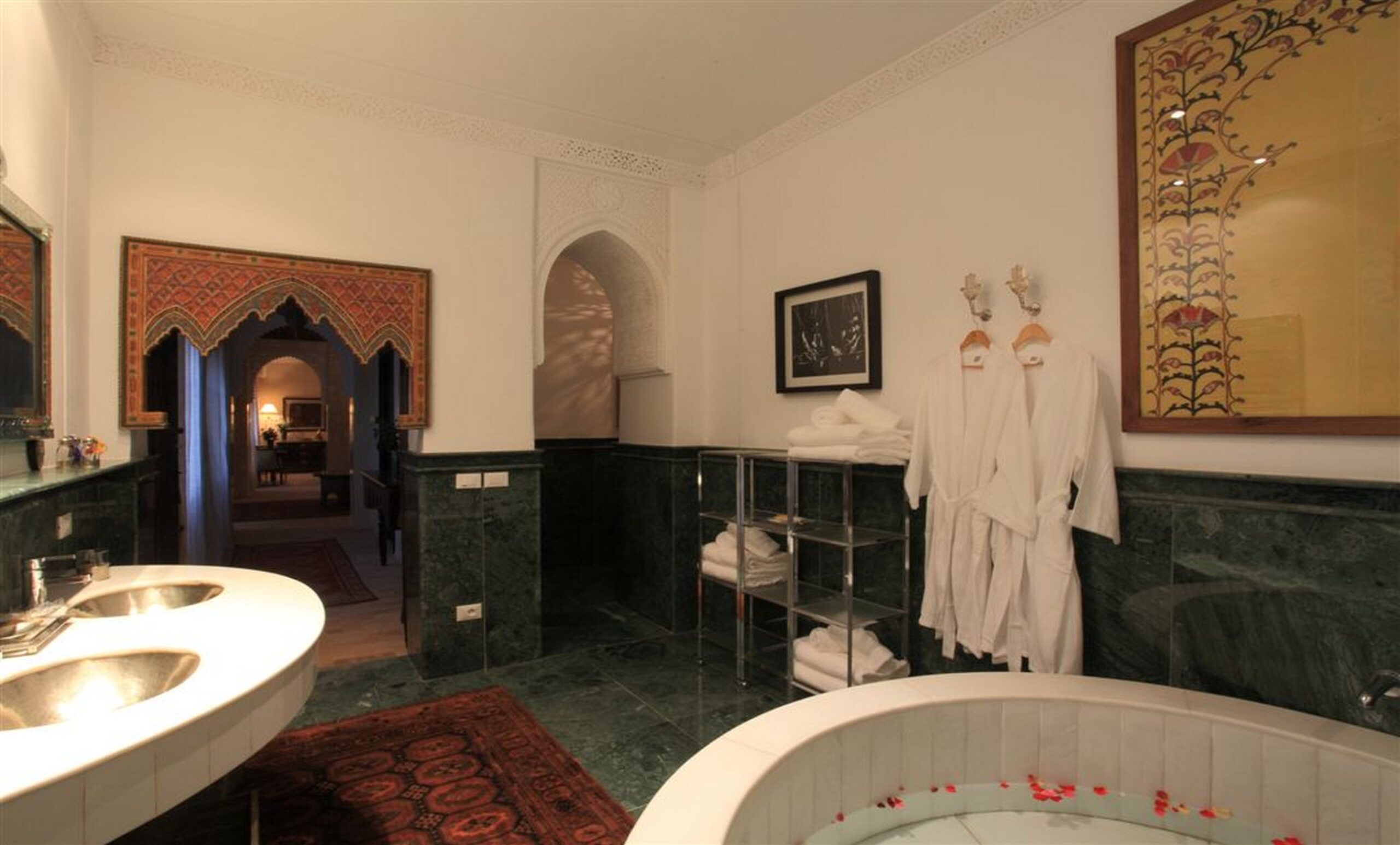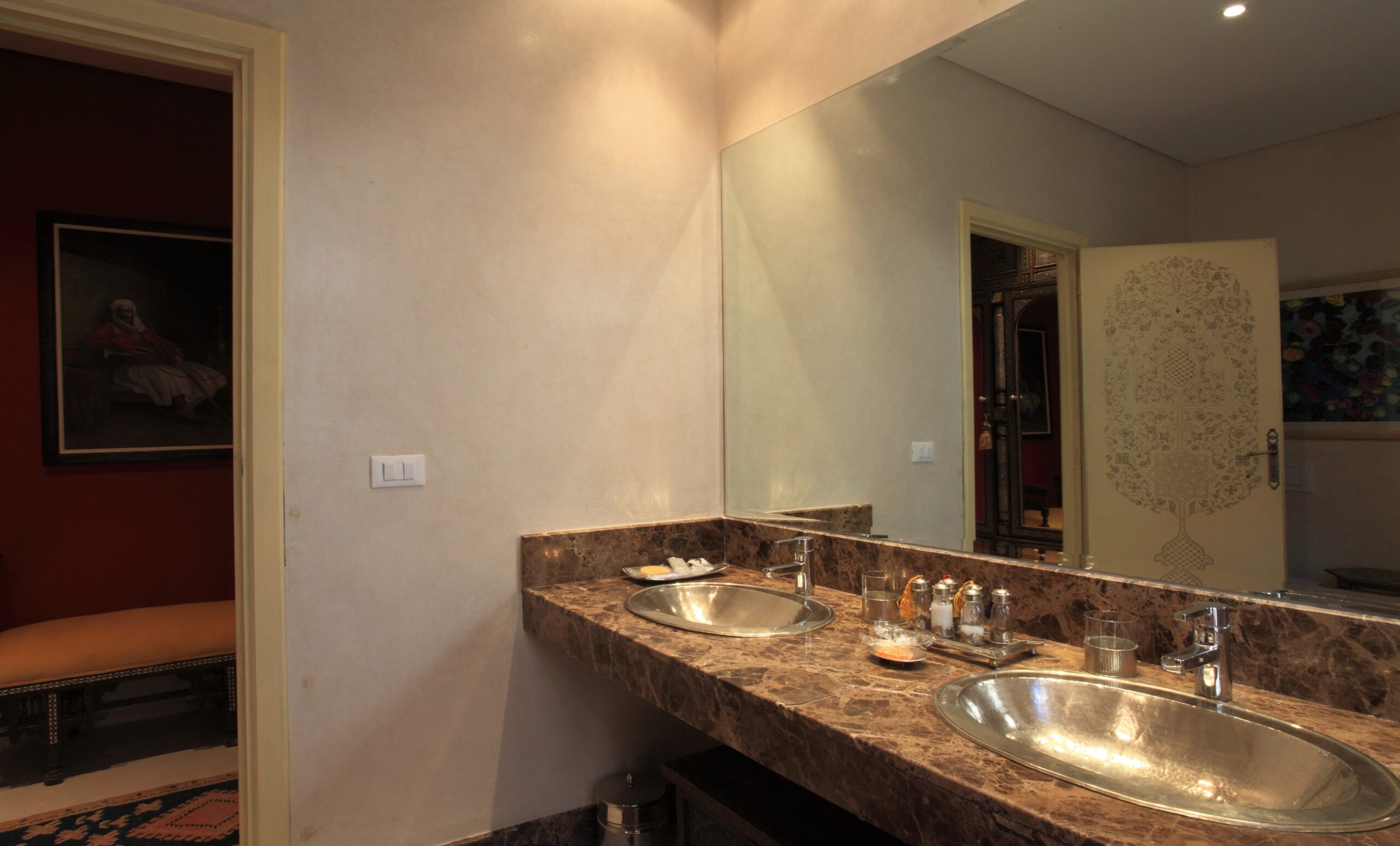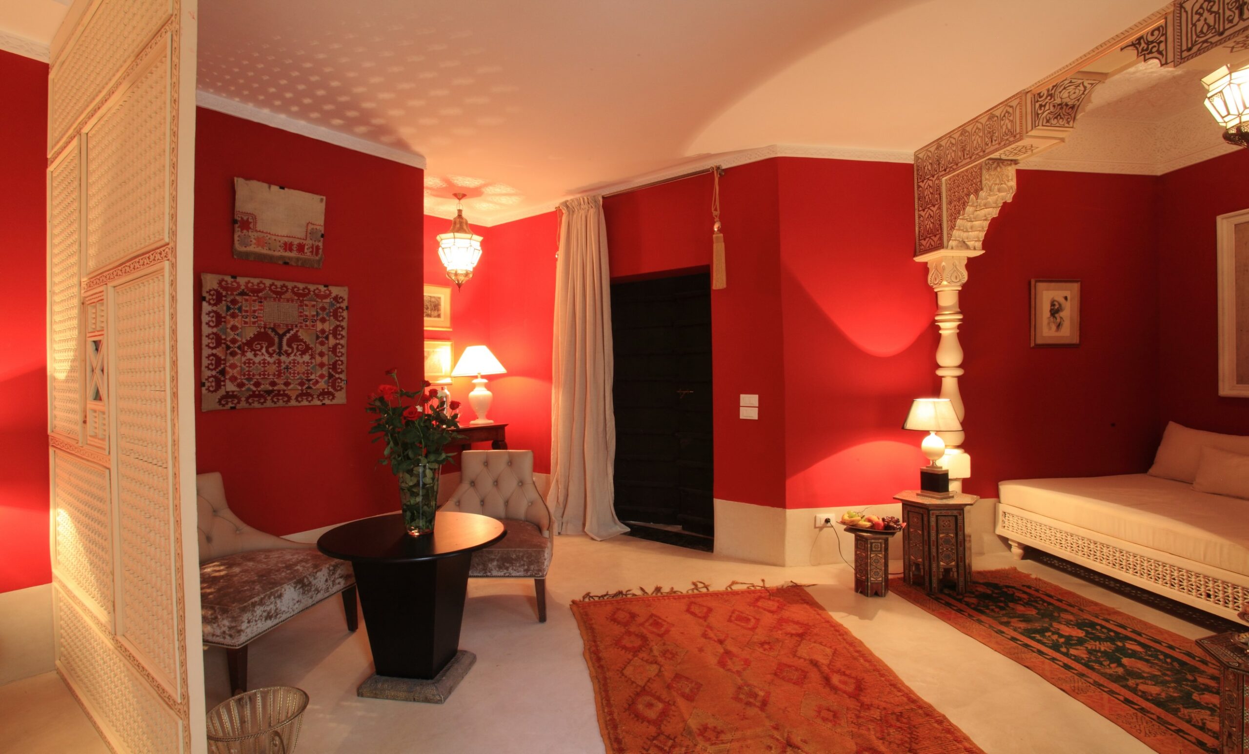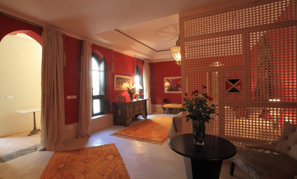 Le Salon du Palais Khum est une invitation à la détente et à l’échange, au cœur de l’art de vivre marrakchi. Dans une atmosphère feutrée et raffinée, laissez-vous séduire par le rituel du thé marocain traditionnel, servi dans un cadre authentique mêlant confort, élégance et sérénité. Un lieu idéal pour se retrouver, se reposer ou… Équipements & Services – Palais Khum 🛏️ ÉQUIPEMENTS DE LA CHAMBRE ✓Salle de bain en marbre Emperador ✓Télévision avec chaînes satellite ✓Connexion Wi-Fi gratuite ✓Coin salon confortable ✓Climatisation ✓Chauffage ✓Décoration raffinée inspirée du Palais du Grand Vizir ✓Vue sur jardin / terrasse extérieure ✓Terrasse bien exposée 🛎️ SERVICES INCLUS & DISPONIBLES ✓Réception ouverte 24h/24 ✓Service… Équipements & Services – Palais Khum 🛏️ ÉQUIPEMENTS DE LA CHAMBRE ✓Salle de bain en marbre Emperador ✓Télévision avec chaînes satellite ✓Connexion Wi-Fi gratuite ✓Coin salon confortable ✓Climatisation ✓Chauffage ✓Décoration raffinée inspirée du Palais du Grand Vizir ✓Vue sur jardin / terrasse extérieure ✓Terrasse bien exposée 🛎️ SERVICES INCLUS & DISPONIBLES ✓Réception ouverte 24h/24 ✓Service… CHAMBRE GRAND VISIR Une immersion royale au cœur du raffinement Véritable hommage à l’élégance et à l’art de vivre d’inspiration orientale, la Chambre Grand Vizir offre une expérience unique où luxe, confort et sérénité se rencontrent. Pensée dans les moindres détails, elle séduit par son atmosphère chaleureuse, ses matériaux nobles et sa décoration raffinée évoquant… Ouverte sur les terrasses du Palais, cette chambre séduit par son mariage subtil entre l’or byzantin et les influences artistiques de l’Afrique noire. Dotée d’une grande terrasse privée et d’une salle de bain en tadelakt, elle offre un cadre intime et raffiné, idéal pour un séjour empreint d’élégance et d’authenticité. Équipements & Services – Palais… Équipements & Services – Palais Khum 🛏️ ÉQUIPEMENTS DE LA CHAMBRE ✓Salle de bain en marbre Emperador ✓Télévision avec chaînes satellite ✓Connexion Wi-Fi gratuite ✓Coin salon confortable ✓Climatisation ✓Chauffage ✓Décoration raffinée inspirée du Palais du Grand Vizir ✓Vue sur jardin / terrasse extérieure ✓Terrasse bien exposée 🛎️ SERVICES INCLUS & DISPONIBLES ✓Réception ouverte 24h/24 ✓Service… Équipements & Services – Palais Khum 🛏️ ÉQUIPEMENTS DE LA CHAMBRE ✓Salle de bain en marbre Emperador ✓Télévision avec chaînes satellite ✓Connexion Wi-Fi gratuite ✓Coin salon confortable ✓Climatisation ✓Chauffage ✓Décoration raffinée inspirée du Palais du Grand Vizir ✓Vue sur jardin / terrasse extérieure ✓Terrasse bien exposée 🛎️ SERVICES INCLUS & DISPONIBLES ✓Réception ouverte 24h/24 ✓Service… Équipements & Services – Palais Khum 🛏️ ÉQUIPEMENTS DE LA CHAMBRE ✓Salle de bain en marbre Emperador ✓Télévision avec chaînes satellite ✓Connexion Wi-Fi gratuite ✓Coin salon confortable ✓Climatisation ✓Chauffage ✓Décoration raffinée inspirée du Palais du Grand Vizir ✓Vue sur jardin / terrasse extérieure ✓Terrasse bien exposée 🛎️ SERVICES INCLUS & DISPONIBLES ✓Réception ouverte 24h/24 ✓Service… Équipements & Services – Palais Khum 🛏️ ÉQUIPEMENTS DE LA CHAMBRE ✓Salle de bain en marbre Emperador ✓Télévision avec chaînes satellite ✓Connexion Wi-Fi gratuite ✓Coin salon confortable ✓Climatisation ✓Chauffage ✓Décoration raffinée inspirée du Palais du Grand Vizir ✓Vue sur jardin / terrasse extérieure ✓Terrasse bien exposée 🛎️ SERVICES INCLUS & DISPONIBLES ✓Réception ouverte 24h/24 ✓Service… Équipements & Services – Palais Khum 🛏️ ÉQUIPEMENTS DE LA CHAMBRE ✓Salle de bain en marbre Emperador ✓Télévision avec chaînes satellite ✓Connexion Wi-Fi gratuite ✓Coin salon confortable ✓Climatisation ✓Chauffage ✓Décoration raffinée inspirée du Palais du Grand Vizir ✓Vue sur jardin / terrasse extérieure ✓Terrasse bien exposée 🛎️ SERVICES INCLUS & DISPONIBLES ✓Réception ouverte 24h/24 ✓Service…